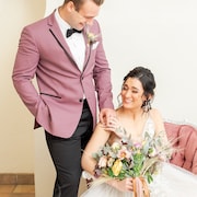 Yes, I have over 50 fabric swatches from online bridal store in my studio. You can also mail me a color swatch to match. Everything with the color you would like will work. A paper plate, napkin or a fabric.