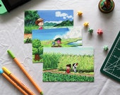 5 out of 5 starsThese are so cute! I ordered a 3 pack and they are literally frame-worthy. Each is printed with beautiful colors. They shipped and arrived quickly. The packaging kept them in pristine condition. The artist was very professional and communicative. I would give 10/5 stars if I could. I will be ordering from this shop again!
