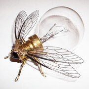 The items in my shop - steampunk jewellery, sculptures and illustrations - are all influenced by the sub-genre of science fiction in some way. My latest creations incorporate old lightbulbs, used to create clockwork bees, wasps, flies and spiders.