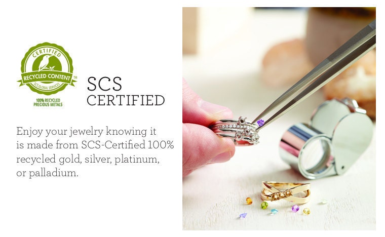 All gemstones used in our jewelry are guaranteed conflict-free, based on personal knowledge and/or written assurances from our suppliers. Our precious metals are sourced from SCS-Certified 100% recycled gold, silver, platinum, or palladium, so you can enjoy your jewelry knowing it was created with responsibly sourced materials.