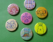 5 von 5 SternenIch liebe mein Überraschungspaket aus fünf Ansteckern. Dass sie von der Künstlerin für mich ausgewählt wurden, auf der anderen Seite der Welt ein absoluter Fremder, lässt mich noch lächeln. Ich habe sie auf meiner Tasche und andere Menschen lieben sie auch. Pünktlich angekommen, all das Jazz :)