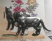 Las estampaciones se hacen golpeando una lámina plana de latón crudo entre dos piezas de acero en forma llamadas troqueles. Las formas positivas y negativas del troquel crean una pieza de 2 dimensiones, con respaldo plano o con respaldo de concha. Dado que los troqueles rara vez se desgastan, la mayoría de los troqueles utilizados para hacer las estampaciones para Squirrelnuts son antiguos y muchos de mis estampados son golpes vintage. El latón crudo, los golpes vintage ofrecidos se han oscurecido con la edad y se pueden iluminar con el pulido. Los golpes más nuevos de los troqueles antiguos originales se pueden pedir en múltiples conjuntos. Si un artículo en la tienda se parece al oro, pero cuesta mucho menos, ¡lo más probable es que sea solo latón nuevo o pulido!