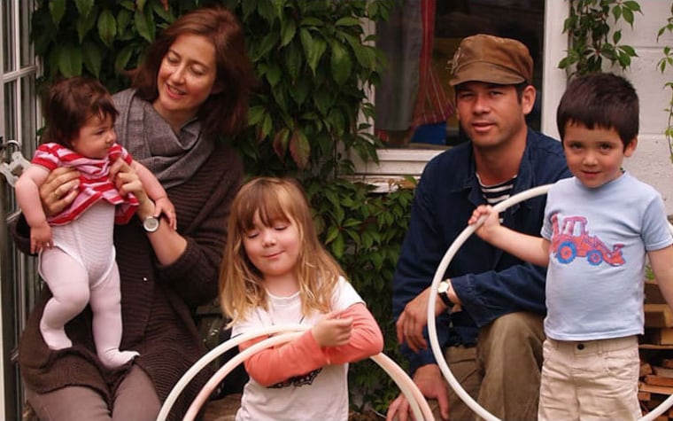 Ros, Ed and our family; Poppy, Felix and Suki, in front of one of our workshops.