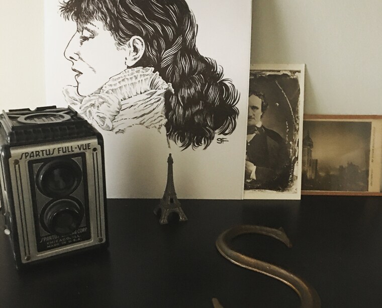 From the macabre and haunted world of Poe, to the beauty and sensuality of Art Nouveau, to the portraits in ink of great writers, this shop includes something here for every lover of literature, graphic art, and good design. I am the sole creator of the work shown here, from the rendered art and photography to the printing and shipping. Prints are made to order with every effort made to ensure it is of the highest quality.