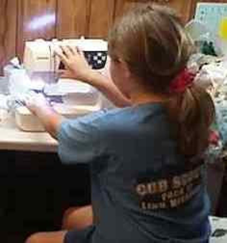 My granddaughter learning how to sew.
