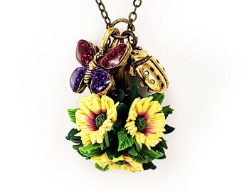 Each piece is designed and handcrafted by Sharlene in her home studio. Her technique involves no molds or paint but instead sculpting each petal using a rich blend of color-embedded clays and assembling the jewelry components by hand. Since the entire process is specially made for each order, it allows her to offer a large color palette and style options to choose from and a more personalized shopping experience on handmade products.