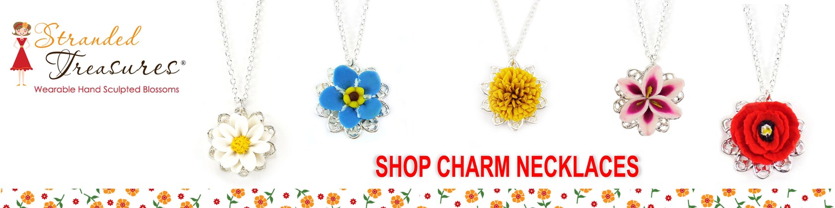 The Stranded Treasures collection is original finished jewelry only offered at the listed price with their included components. Flowers are not available for sale as supplies, altered, or with partial components (ie: charms, pendants).