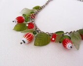 I am greatly inspired by my love of vintage fruit salad, and venetian glass necklaces. I also love large chunky statement pieces like my grandmother used to wear. I try and bring these influences into my designs.