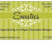 **If you know of anyone in your circle that could benefit from having their company logo on our items to promote their business, please let us know. We're accepting corporate orders using custom logos and prints. For every referral that becomes an order, you'll receive a $50 gift certificate for our Sweeties shop!