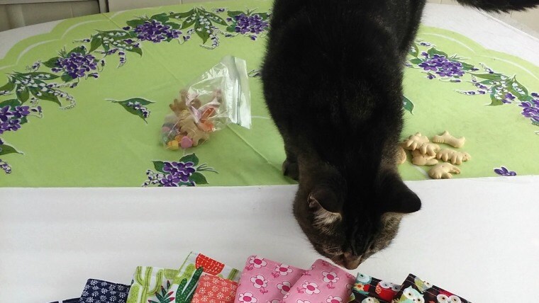 Luna likes to supervise all the cutting and sewing. She usually brings a toy mouse with her to the sewing studio, and then settles in on her own designated fabric pile, keeping her fur off the rest.