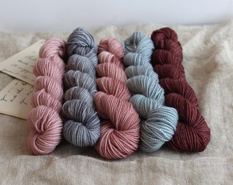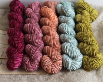 Mini Skein set, Peyton Sock, Special Sale, One of a kind, soft midtones, pink, currant, soft teal