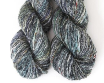 hand dyed yarn Cashmere handspun, 'Seawall' worsted 2 ply knitting yarn Mallory, speckled, blue, green, gray
