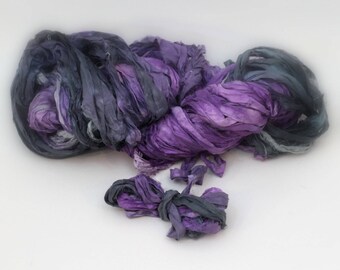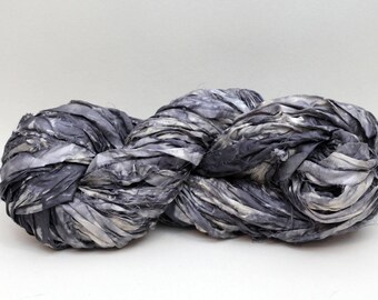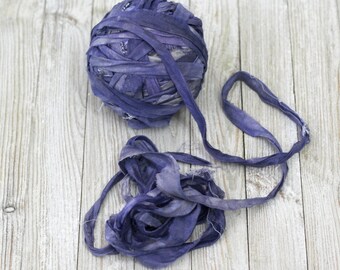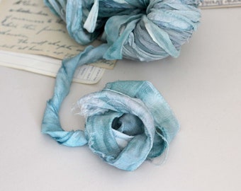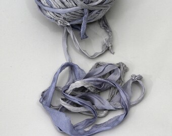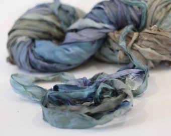Recycled Sari Ribbon ,by the yard, "Rainy Sky" hand dyed chiffon ribbon, jewelry making, doll clothing, spinning supplies