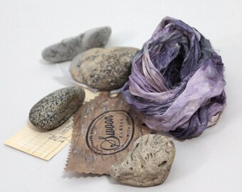 Recycled Sari Ribbon ,by the yard, "Gravel Pit" hand dyed chiffon ribbon, jewelry making, doll clothing, spinning supplies