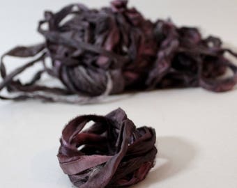 Recycled Sari Ribbon ,by the yard, "Wine Stain" hand dyed chiffon ribbon, jewelry making, doll clothing, spinning supplies