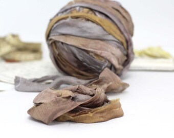 Recycled Chiffon Sari Ribbon ,"Sand and Gravel" hand dyed jewelry making, doll clothing, spinning supplies