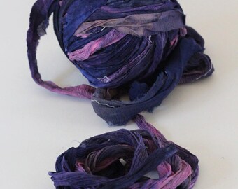Recycled Sari Ribbon ,by the yard, "Crocus Pokus" hand dyed chiffon ribbon, jewelry making, doll clothing, spinning supplies