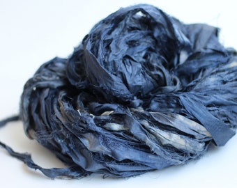 Recycled Chiffon Sari Ribbon ,by the yard, "Shredded Denim" hand dyed jewelry making, doll clothing, spinning supplies