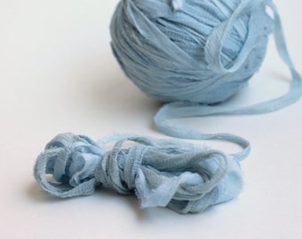 Recycled Chiffon Sari Ribbon ,"Pale Denim" hand dyed jewelry making, doll clothing, spinning supplies