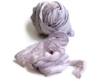 Recycled Chiffon Sari Ribbon ,"Pale Orchid" hand dyed jewelry making, doll clothing, spinning supplies