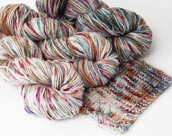 Hand dyed yarn handspun ‘Flower Trail’Laurel worsted 100% Merino, softly speckled