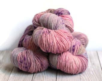 Hand dyed yarn handspun Lilac Shade Laurel worsted 100% Merino, softly speckled