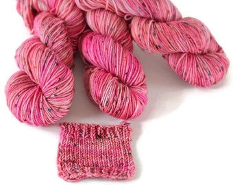 Hand dyed Yarn Superwash Merino, Amanda Worsted, ' Princess Charming', pink, speckles