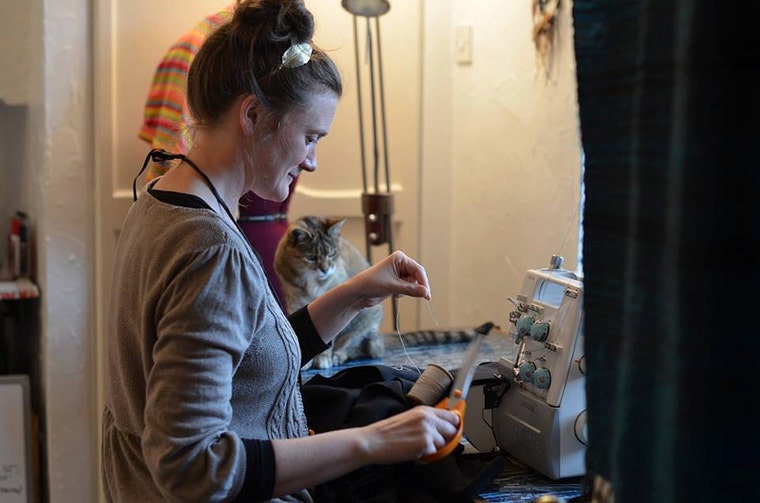 Kate has accumulated a variety of old & new sewing machines to assist her clothes making, each has a name & personality of they're own. She takes great care in maintaining Berny, Toya & Frizzy, oiling & tuning them regularly. Sometimes she spends more time fussing over the machines than me! Outrageous! She also has a 1950's Singer 99k hand-crank, so if any Solar Storms should happen to take out the grid she can continue to make clothes from whatever is left behind. Maybe a cat bed for me :) Meow.