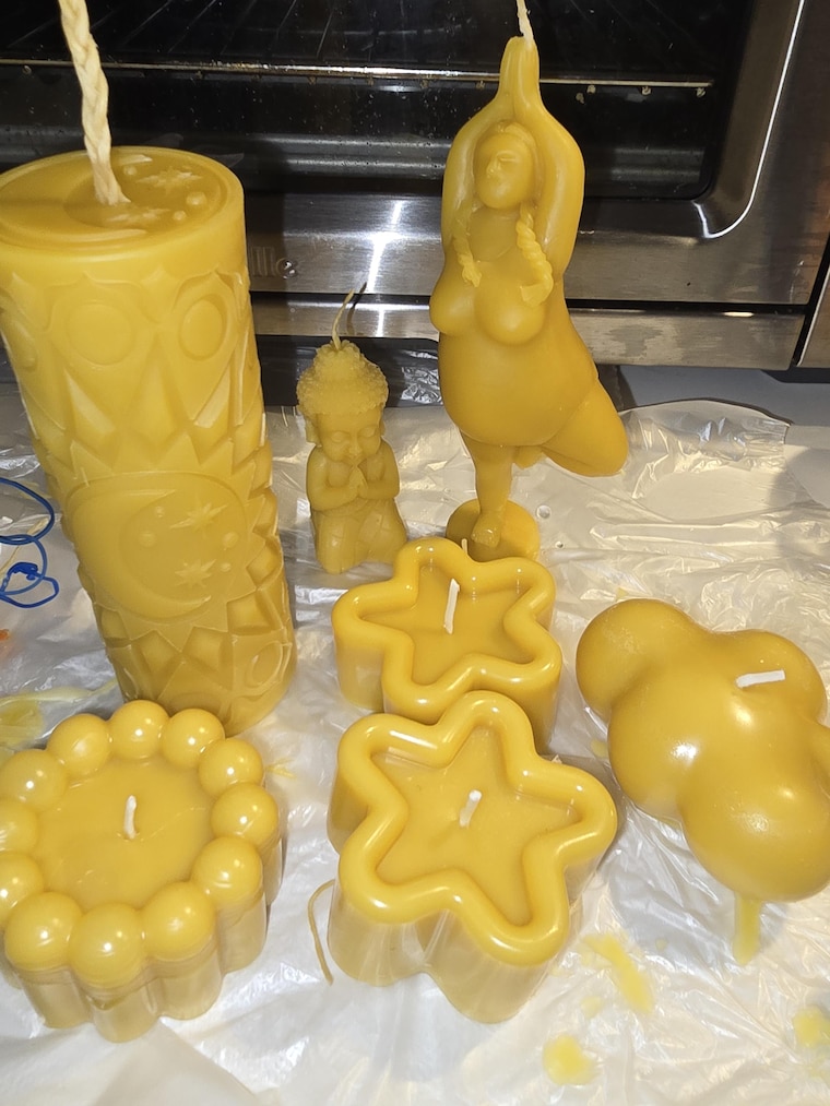 Making candles is a beautifully meditative process for me. Each one feels like I’m pouring bits of myself and my intentions into the wax, shaping something with care, watching it transform, and bringing it to life. When I burn these candles in my own ceremonies and rituals, it feels complete, and I love knowing others can do the same.