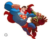 5 out of 5 starsReally love the Franchize's art style! A great dynamic scene between the greatest superhero and his archenemy. The print is high quality and shipping was lightning fast! No complaints here! 5-stars all-around!