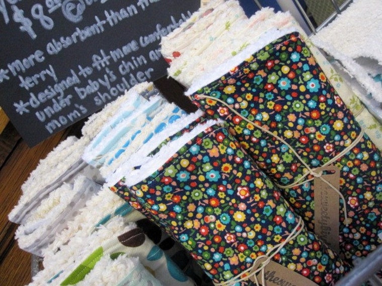 Ever popular, always practical bibs and burp cloths. So absorbent in terry chenille with a print to add character.