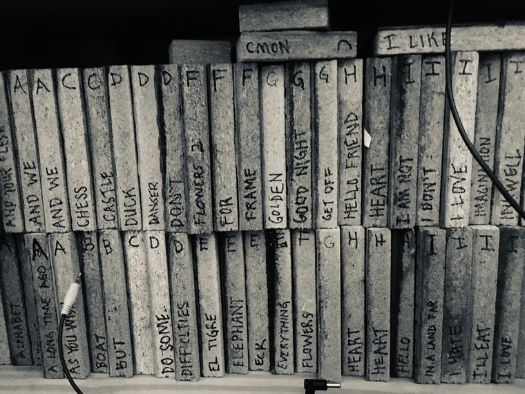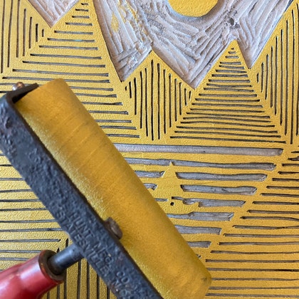 Linoleum blocks, ready to be shown who is boss. Each is designed and carved by hand. -