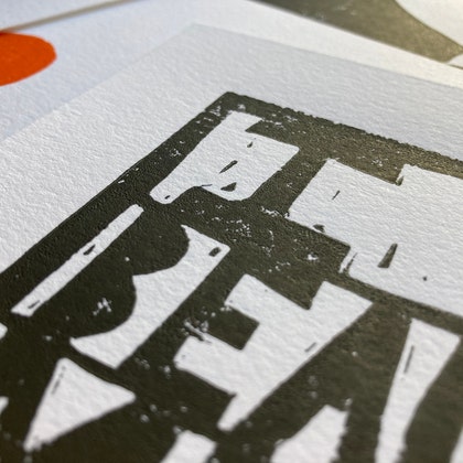 Unique hand-pressed linoleum block prints, minimal letterpress posters, mid century modern design, and inspirational typography. Every linocut print and letterpress print is hand-pressed original (one of a kind) in our shop.