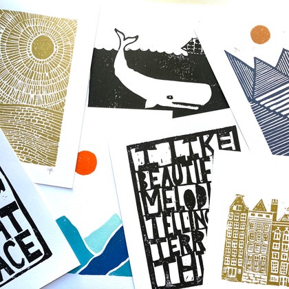 With free shipping and custom colors offered, these hand-pressed linocut prints on beautiful letterpress paper make superb gifts!