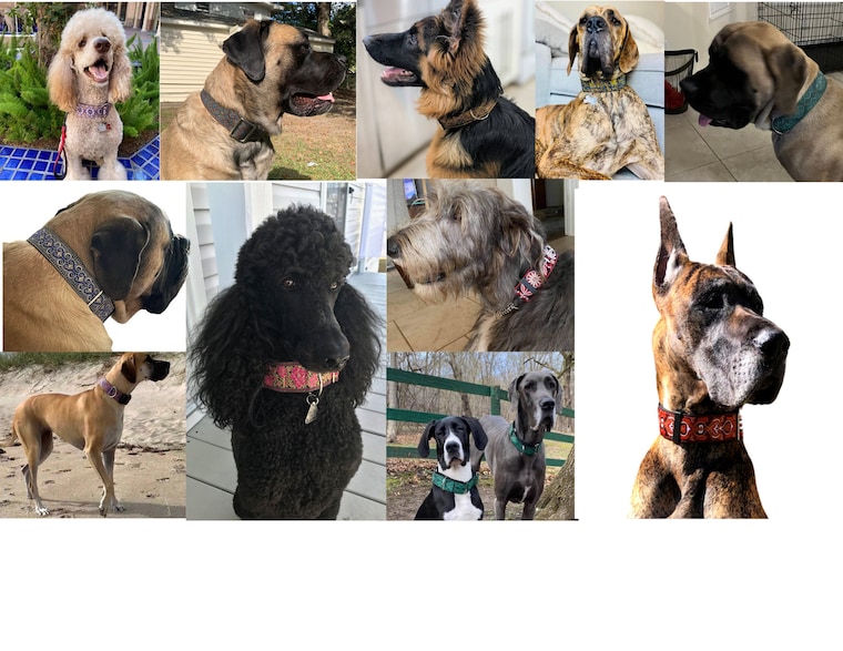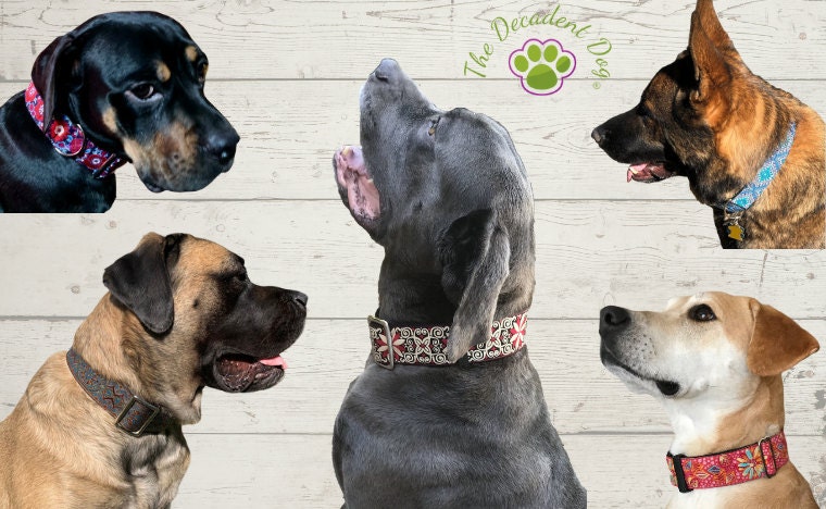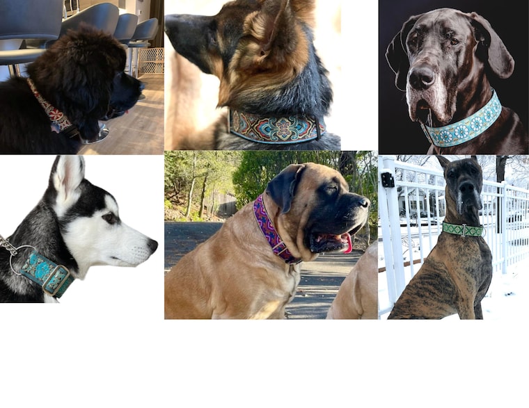 We specialize in handcrafting wide buckle and martingale collars for Large and Giant Breed Dogs that are as strong and durable as they are beautiful. Satin Lined for Comfort. Custom lengths available on request.