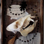 The majority of the animal parts and other components are secondhand or salvaged, either from old fur coats and the like, or discarded from the fur coat industry, or old jewelry and other found objects, though be aware there are some newer/not recycled remains incorporated in some projects as well. You are most welcome to ask me about the specific origins (secondhand, hunting/trapping, fur farming, etc/) of anything I make and expect and honest answer; I will not misrepresent something just to try to appear more eco-friendly or ethical. If you would like to source something with less environmental/etc. impact, I can do so to the best of my ability, though be aware there are limitations--animals that die in the wild, for example, very quickly become food for others, and so "natural death" remains are rare.