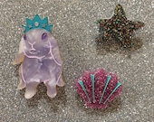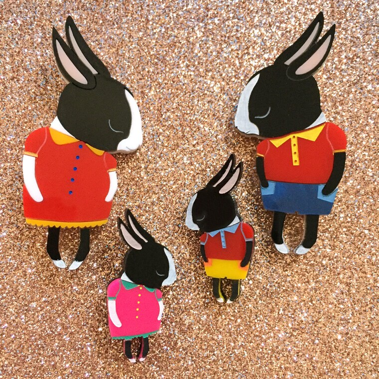 I've been making laser cut jewellery for over 11 years and I enjoy the meticulous nature of plastics! I am animal obsessed, love tiny things and I am inspired by anything CUTE. I always go out of my way to make everything to a very high standard and as detailed and adorable as it possibly could be. I am best known for my love of bunnies, though over the last few years have enjoyed exploring lots of other furry friends too. My brooches are handmade by me, and laser cut by Sydney-based www.onlinelasercutting.com.au, the best in the business!