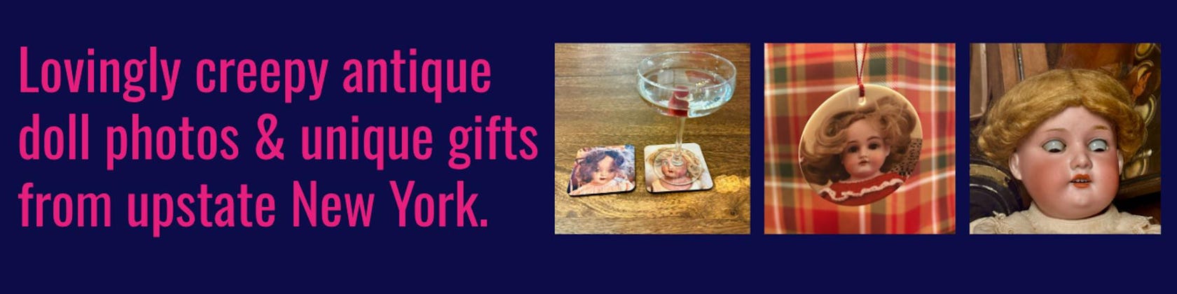 A new shop selling original "lovingly creepy" antique doll photography showcasing the varied faces of yesteryear.