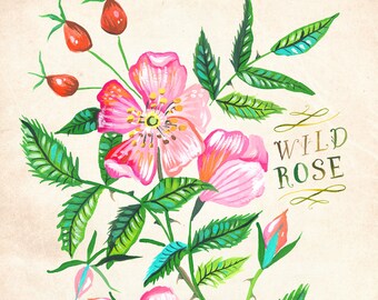 Wild Rose print | Katie Daisy Art | Watercolor Floral | Wall art | 8x10 | 11x14