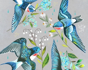 Swallows art print | Bird Painting | Katie Daisy | 8x10 | 11x14