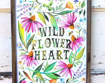 Wildflower Heart | Inspirational Wall Art | Hand Lettering | Floral | Katie Daisy