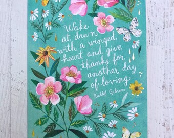 Wake at Dawn Print | Inspirational Wall Art | Hand Lettering | Butterfly Art | Katie Daisy