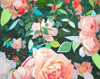 Peach Rose Garden Art Print | Mixed Media Painting | Floral Photograph | Katie Daisy | 8x10 | 11x14