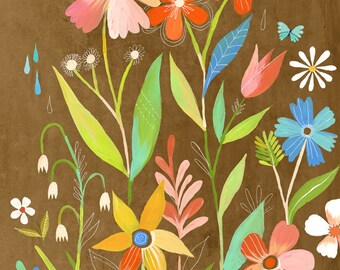 Rain Garden Print | Floral Painting | Colorful Wall Art | Katie Daisy | 8x10 | 11x14