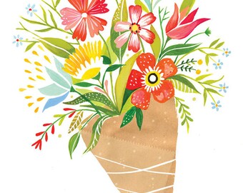 Wildflower Bouquet | Botanical Art Print | Katie Daisy | Vertical Print |
