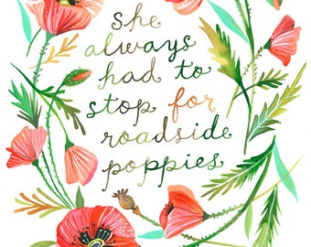 Roadside Poppies art print | Botanical watercolor painting | Floral Wreath | Watercolor Quote | Katie Daisy | 8x10 | 11x14