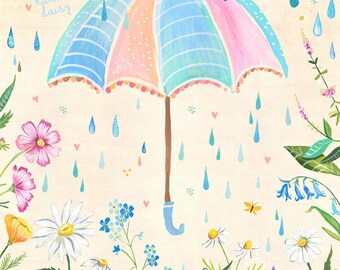 Spring Rain art print | Watercolor painting | Nursery Decor | Katie Daisy | 8x10 | 11x14