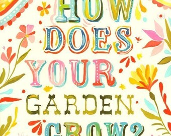 How Does Your Garden Grow Print | Watercolor Quote | Inspirational Wall Art | Nursery Decor | Lettering | Katie Daisy | 8x10
