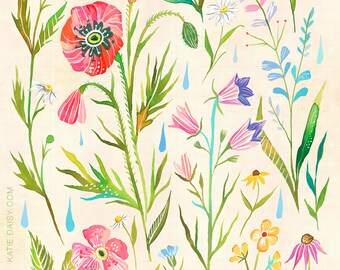 Meadow Study Art Print | Watercolor Painting | Floral Pattern | Katie Daisy | 8x10 | 11x14