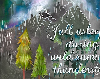 Summer Thunderstorm | Horizontal Print | Watercolor Painting | Katie Daisy Nature Wall art | 8x10 | 11x14